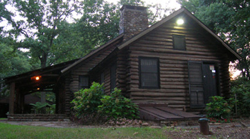 The Log Cabin at Rutgers Gardens was investigated because, well, it's a log cabin on a college campus. Little of the history is known except that it was constructed in 1936 and is now used for public gatherings. One strange discovery was a small tribute to Janet Welsh from Jim E behind the log cabin, consisting of a religious candle and a small monument constructed of wood, berries, pinecones, and an expired pine. While this appears to be a tribute to a woman who has passed away, it is curious as to why it is at this particular location and how it may have happened.